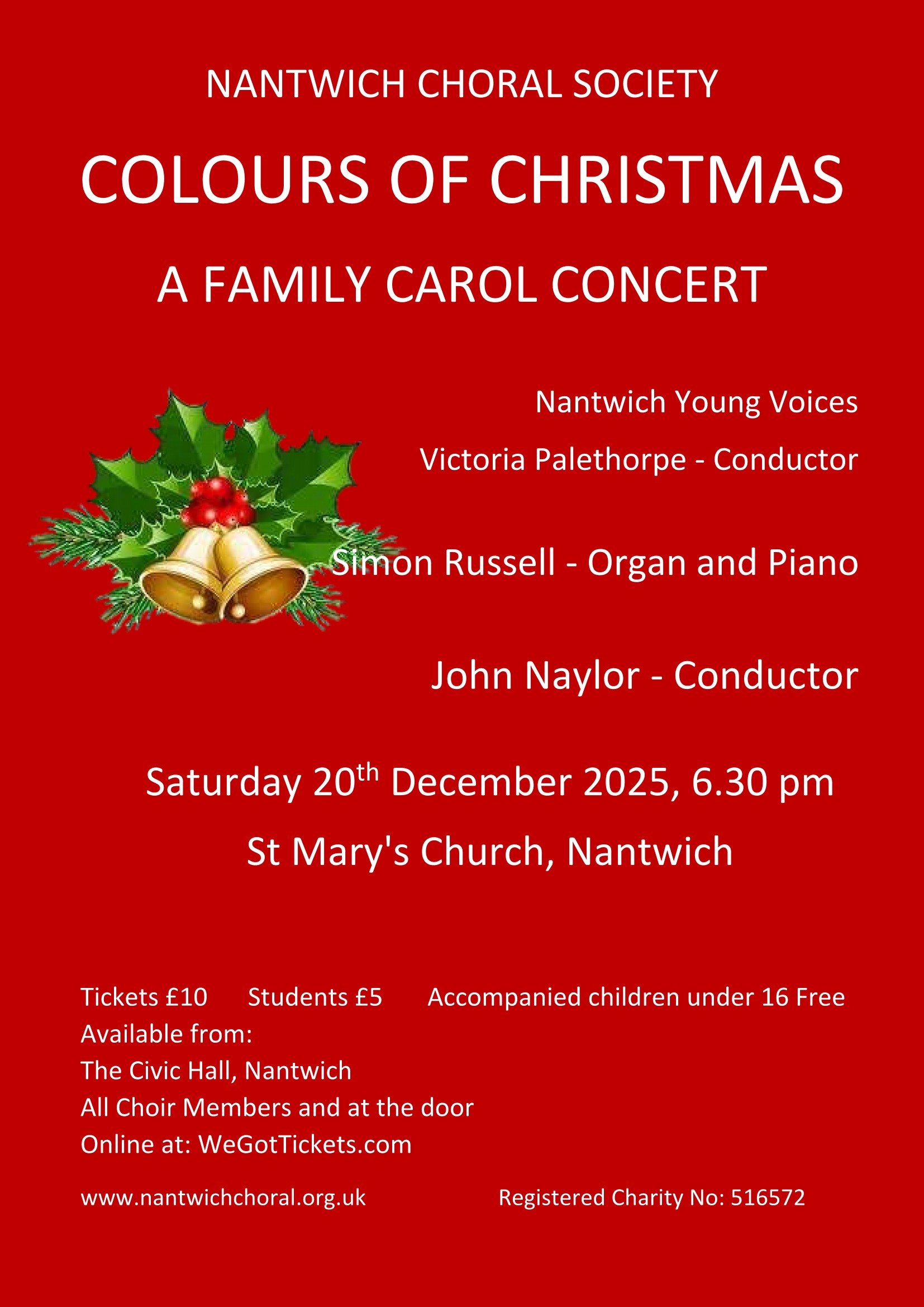 We normally do 4 concerts a year. We also arrange a Singing Day in the Autumn and Come and Sing in January / February. They are open to non-members and attract singers from all over the country.